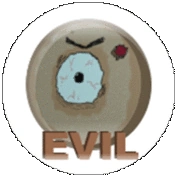 - When you look closely at Evil Donut's skin, you see white speckles. If you think about it for a little, you can figure it out that it is actually sugar.